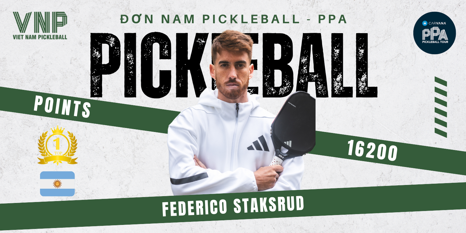 Federico Staksrud, sinh năm 1996, là tay vợt người Argentina hiện đang thi đấu chuyên nghiệp tại Mỹ. Anh từng là vận động viên tennis trước khi chuyển sang Pickleball và nhanh chóng khẳng định mình như một thế lực lớn.